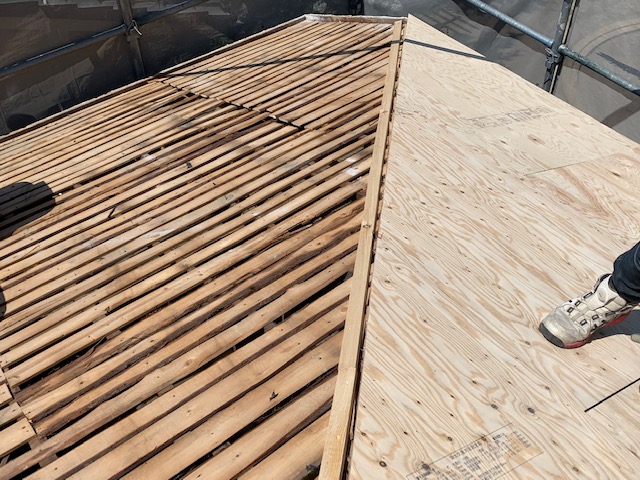 既存屋根瓦を解体して新しい下地を施工した翌日には