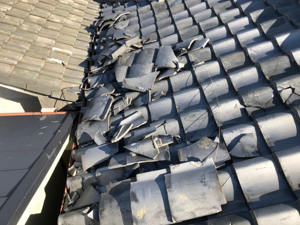 が他の部分の瓦も割ってしまい。部分的に葺き戻す提案をさせて頂きました。お急ぎとのことでしたので現地調査後2週間ほどで着工し2日で完了