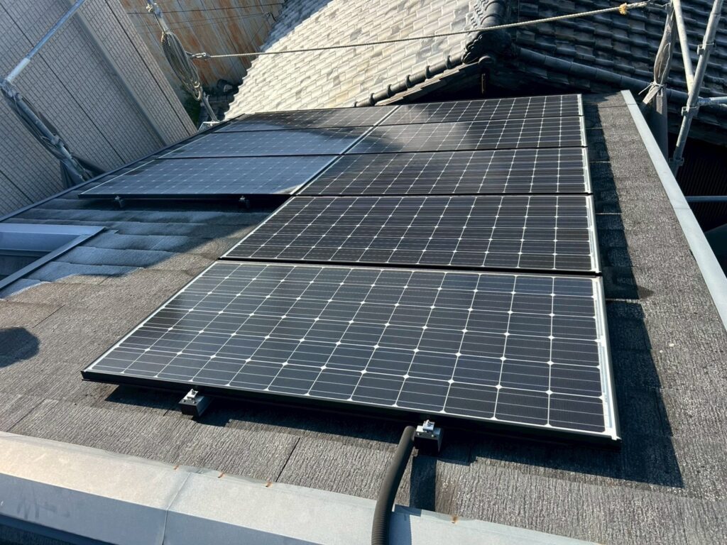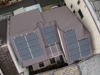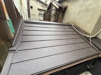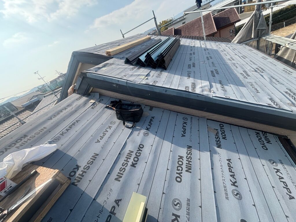 今回ご紹介する施工事例は京都市伏見区でおこなった『屋根重ね葺き(スーパーガルテクト)・太陽光パネル脱着工事』になります。