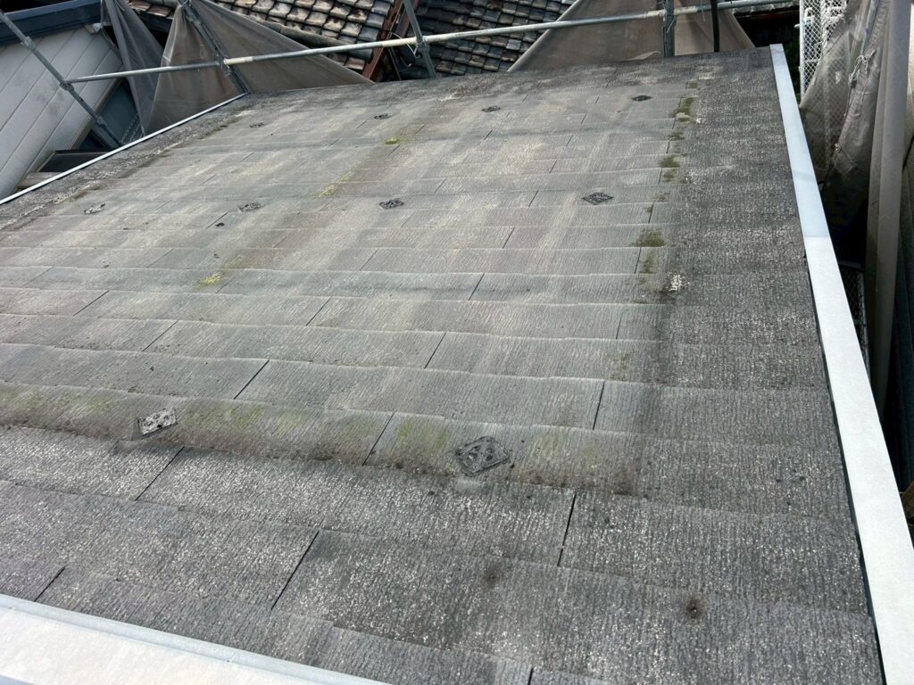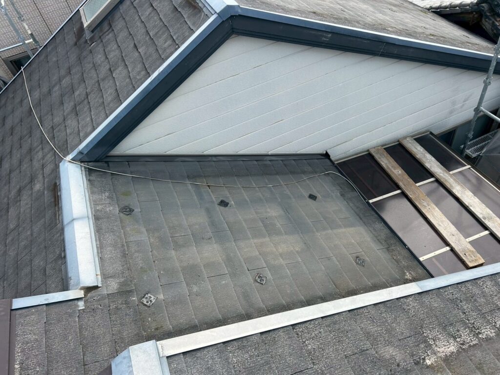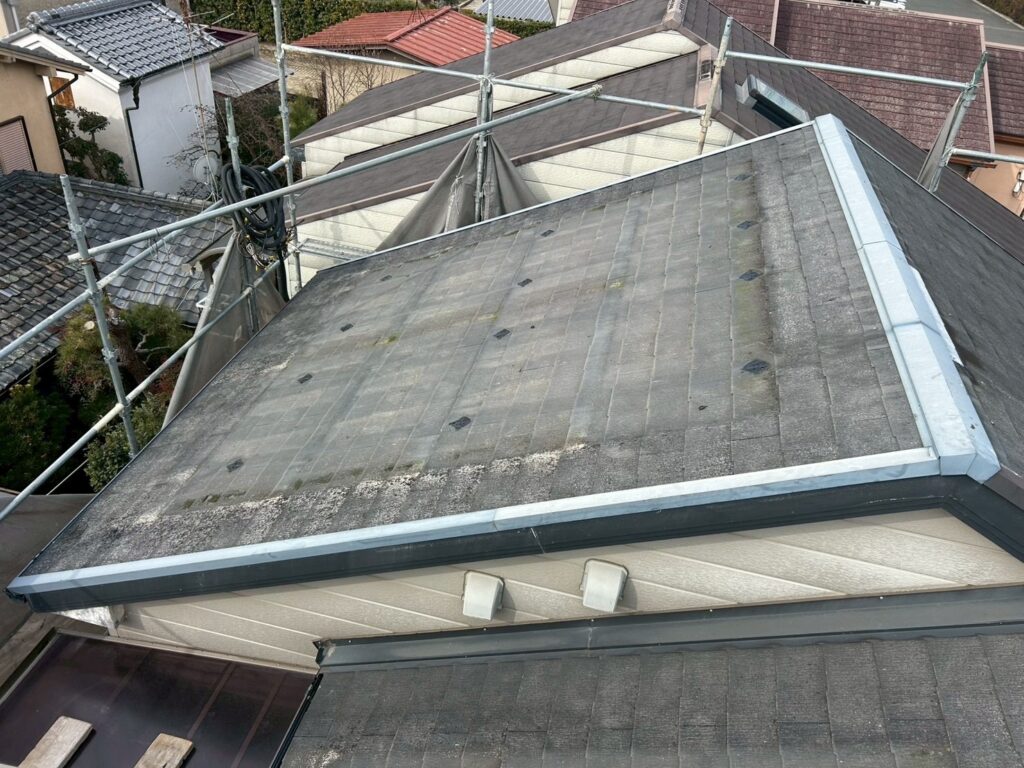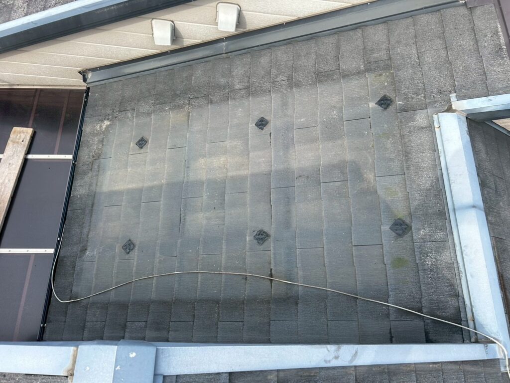 屋根の経年劣化に伴う雨漏りの補修とスレート屋根の葺き替え工事・重ね葺き工事と合わせて破風板金の劣化の補修についてお見積り依頼をいただきました。きっかけは太陽光発電の点検業者に雨漏りしているかもしれないといわれ、築年数も相まって問い合わせしたとのことことでした。