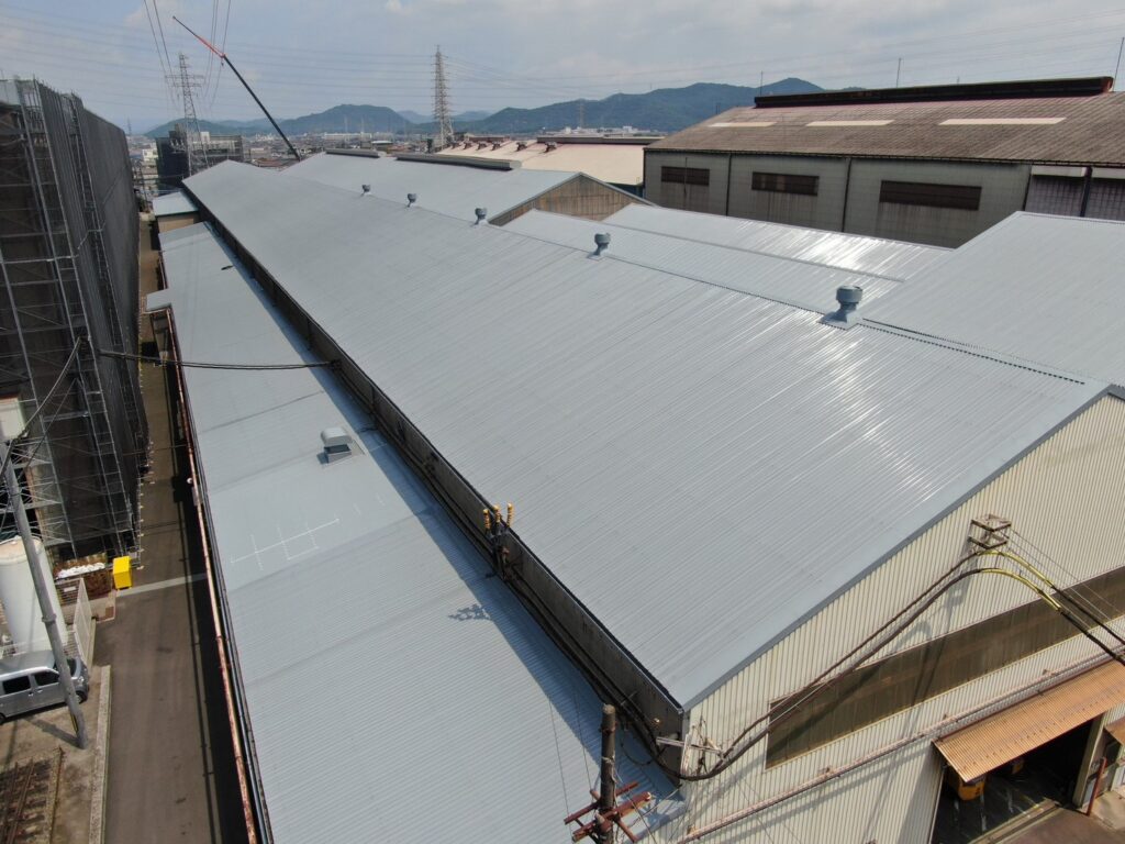 工場屋根の『屋根カバー工法(重ね葺き工事)』になります。