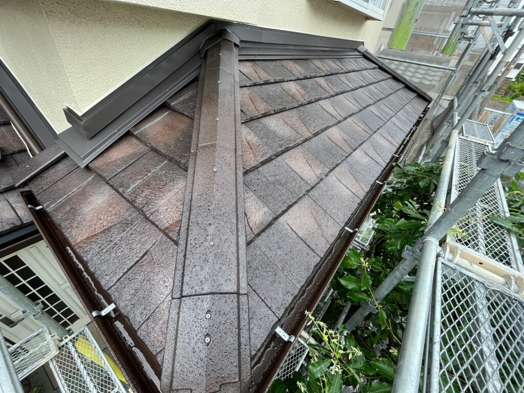 既存のS型瓦から雨漏りがしているとお問い合わせ頂きました。既存の瓦より軽く耐候性にもしっかりしていますルーガ鉄平を葺き替え工事で提案させて頂きました。