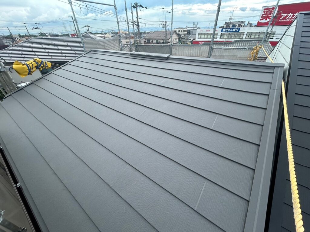 カバー工法が希望でしたので、軽量化・断熱効果があるスーパーガルテクト(IG工業)の屋根材を今回はご提案させていただきました。