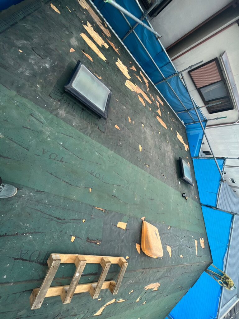 カバー工法でも可能でしたが太陽光パネルが乗っている事もあり重量の事も考え葺き替え工事で提案させて頂きました。