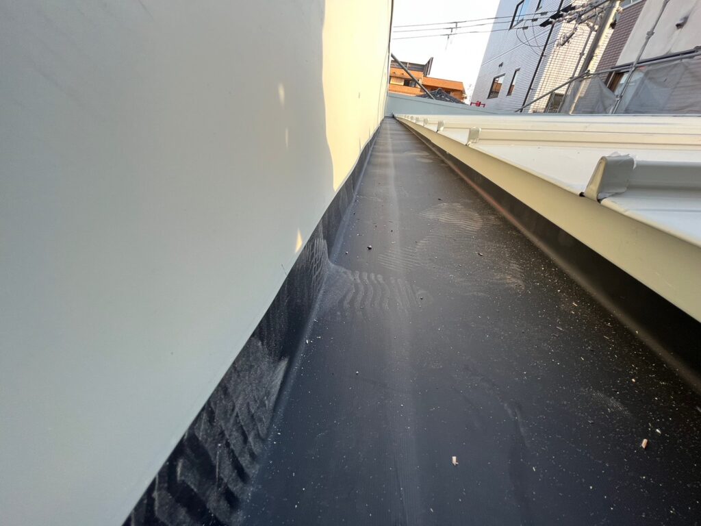 笠木、箱谷の立上がり部の板金も新しく施工し全体的に綺麗に仕上がりました。