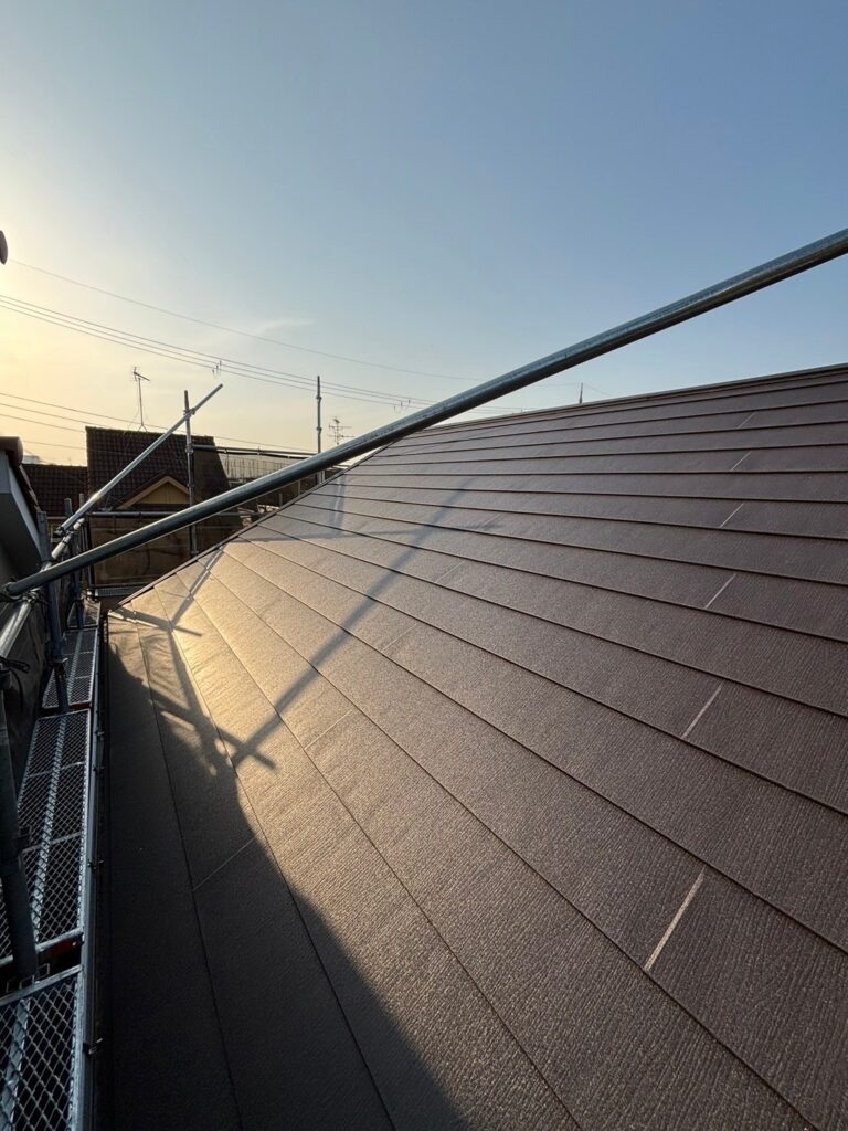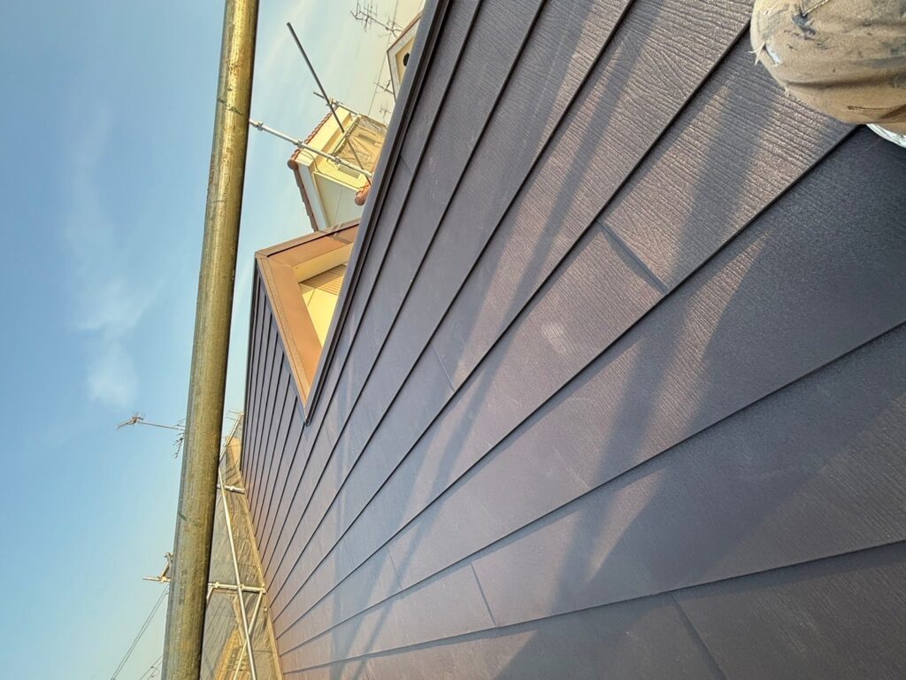 「屋根重ね葺き・破風板金巻き(ケラバ部)工事」です。