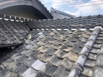 台風被害で大屋根・下屋根共破損部、瓦の割れなど多く