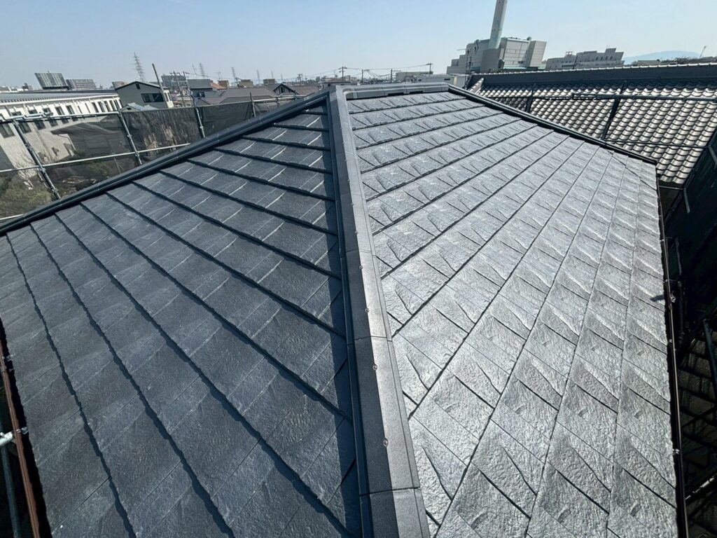 今回ご紹介する施工事例は大阪府高石市でおこなった『屋根葺き替え工事(ルーガ鉄平同質)・雨樋交換工事』になります。