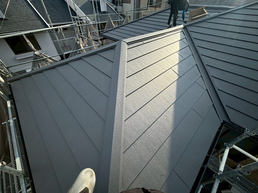 ・工事概要  屋根葺き替え(スーパーガルテクト)・外壁コーキング・追加破風板金塗装工事