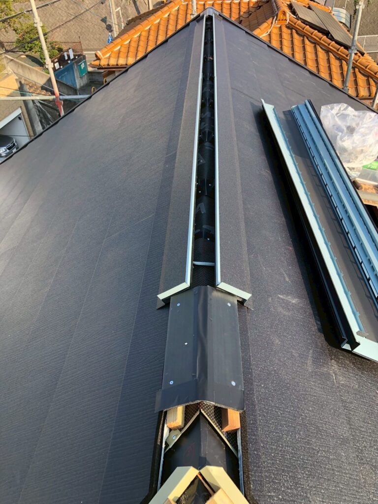 棟板金 下地=樹脂製材木 15.6m