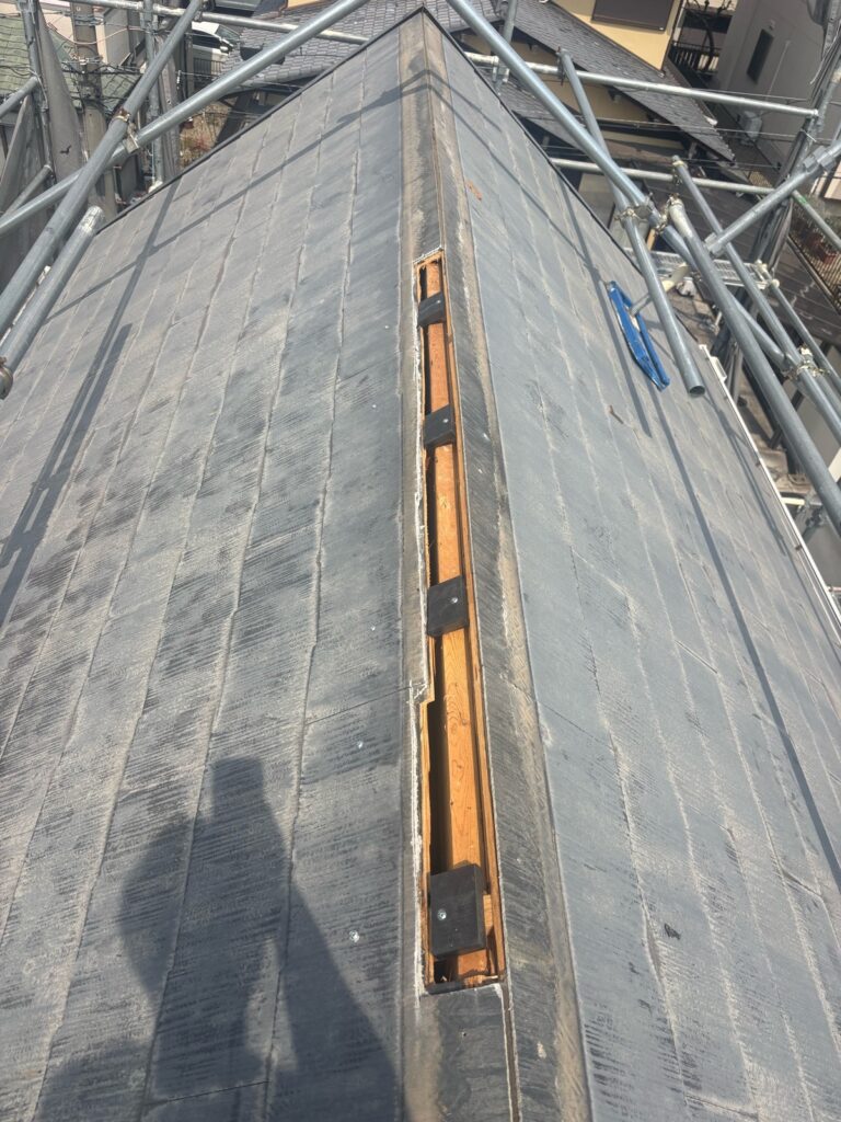 防水シーラー15×15㎜棟(両側)・雨押え部施工 56m