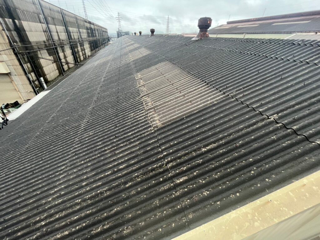 大阪府柏原市にて、工場の大波スレートの屋根カバー工事・屋根塗装・雨樋交換工事を行いました。