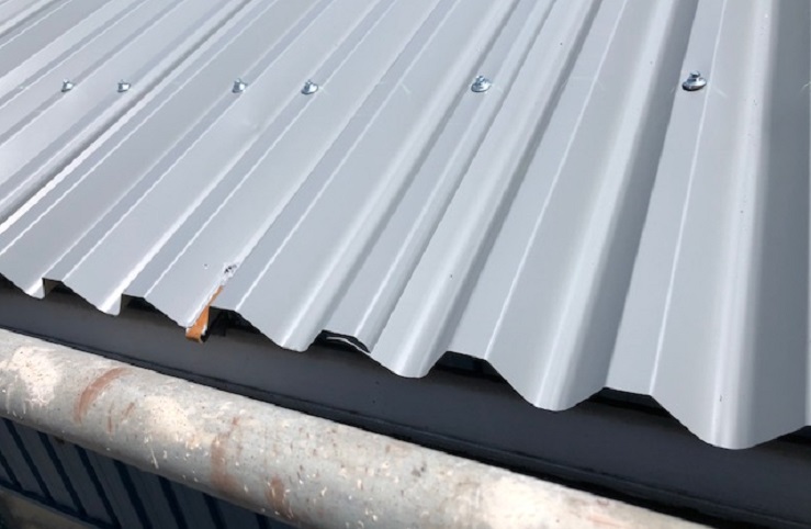 既存屋根のスレート材が割れていた部分を、金属屋根でカバーしました。これにより、屋根から雨水が侵入することも防ぎ、雨漏りの心配もなくなりました。工場や倉庫などであれば、工事が必要だとしても、稼働を止めることに躊躇してしまうことも少なくありません。しかし、状態によっては、今回のように工場の稼働に影響を与えることなく、屋根を万全な状態にするリフォームを進めることもできますので、屋根に何らかの不安がある場合お気軽にお問い合わせください!