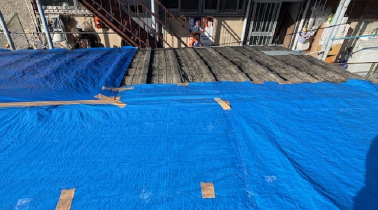 今回は、大阪府豊中市で行った屋根の葺き替え工事を画像とともにご紹介します。今回お問い合わせをいただいた建物は、自然災害により大きく屋根に被害が出てしまったため、新しい屋根材に葺き替えを行ったものです。日本は、地震や台風などといった自然災害が、諸外国と比較すると頻繁に発生する地域となります。もちろん、屋根の状態が万全である場合には、地震や台風が発生したとしても、耐えられるような構造が考えられています。しかし、経年劣化などにより、何らかの不具合が屋根に発生していたとすれば、地震や台風に耐えられず、屋根に大きな被害が出てしまうことがあるのです。
