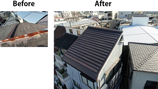 ⇒ 大阪市 西区九条 屋根重ね葺き(スーパーガルテクト)